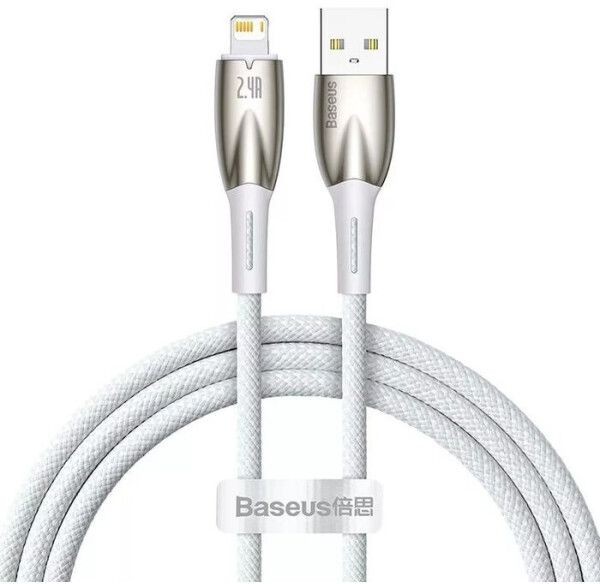 кабель usb - lightning BASEUS GLIMMER SERIES FAST CHARGING CADH000202 (LIGHTNING, 2.4A, 100 СМ, БЕЛЫЙ)