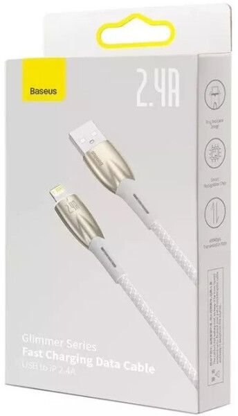 Кабель USB - Lightning BASEUS Glimmer Series Fast Charging CADH000202 (Lightning, 2.4A, 100 см, белый)Glimmer Series Fast Charging CADH000202 (Lightning, 2.4A, 100 см, белый)