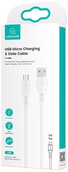 кабель usb - microusb USAMS U68 US-SJ502 (MICROUSB, 2A, 1 М, БЕЛЫЙ)