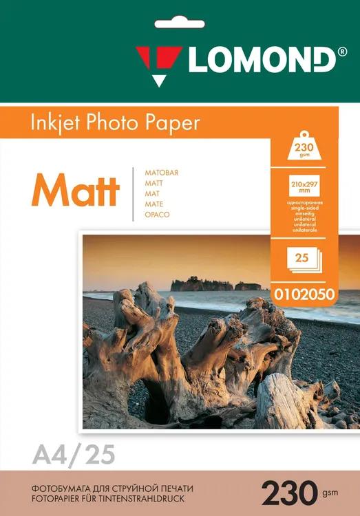 фотобумага LOMOND A4, 230 Г/М, 25 Л, МАТОВАЯ (0102050)