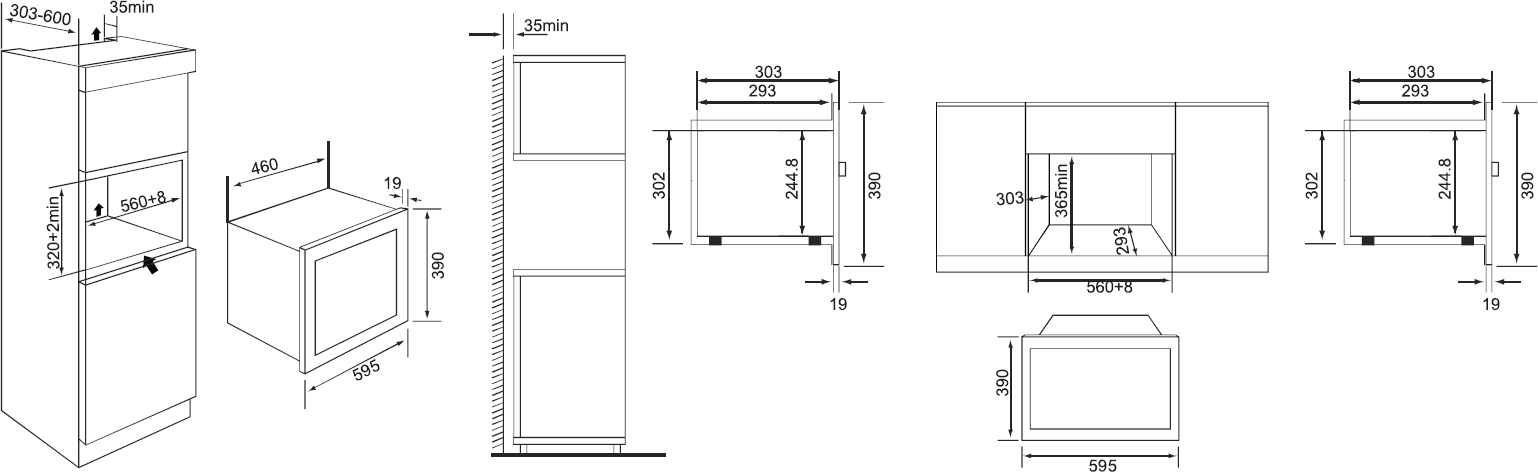- Размещение микроволновой печи внутри ниши/шкафа или монтаж микроволновой печи на установленный кронштейн