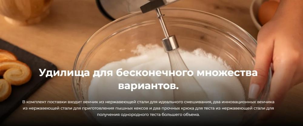• Насадки: венчик для взбивания,
