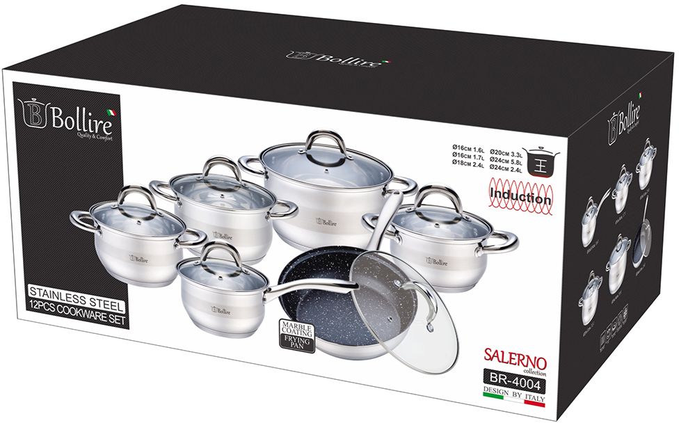 Набор посуды BOLLIRE BR-4004 по выгодной цене. Вам достаточно оформить заказ онлайн на сайте или по телефонам (029) 6 10 22 11, (033) 6 10 22 11, (017) 2 18 33 22.