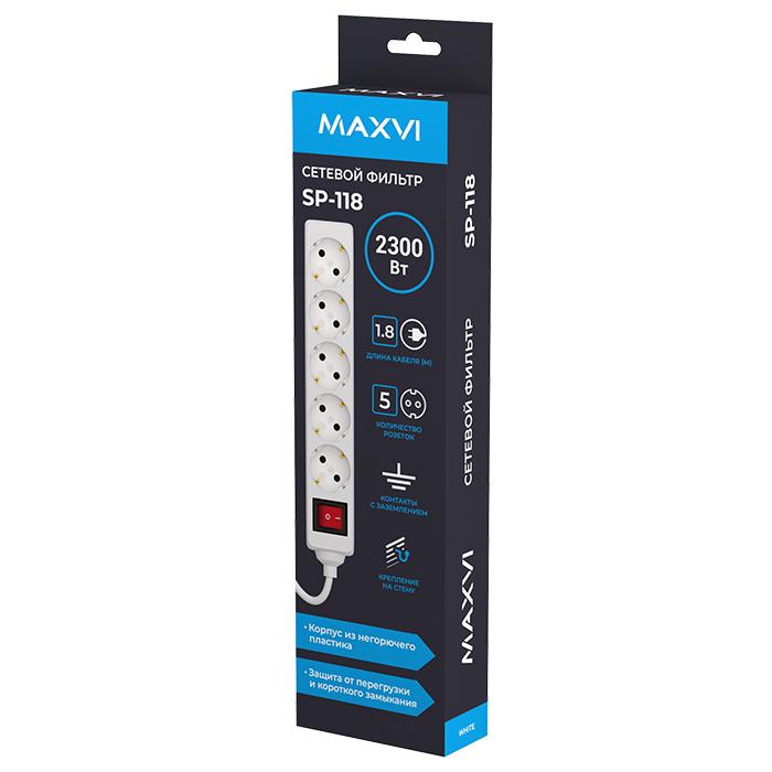 сетевой фильтр MAXVI SP-118 5 ГНЕЗД, 1,8М, (БЕЛЫЙ)