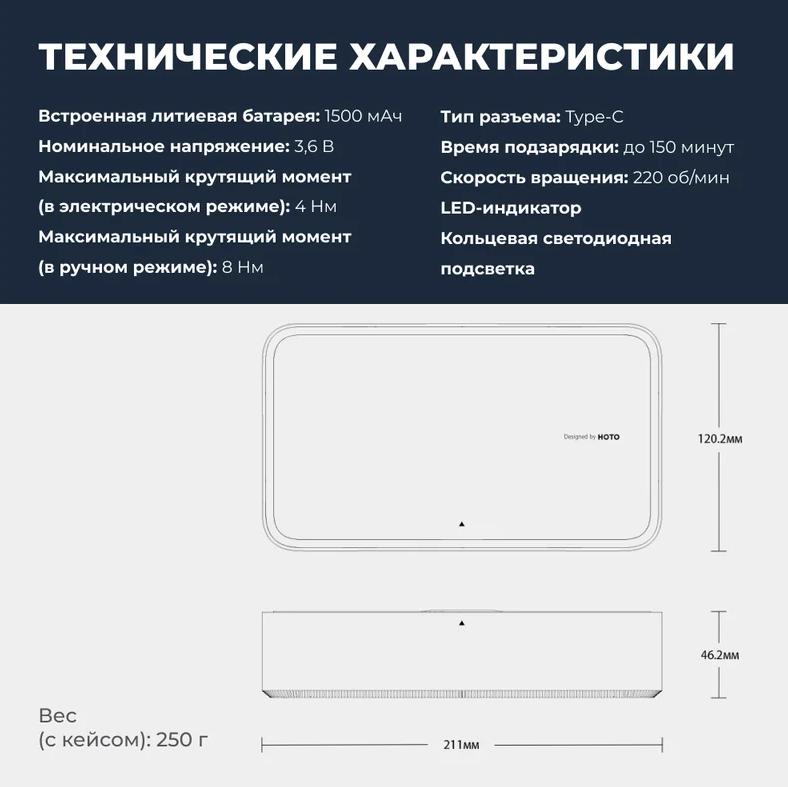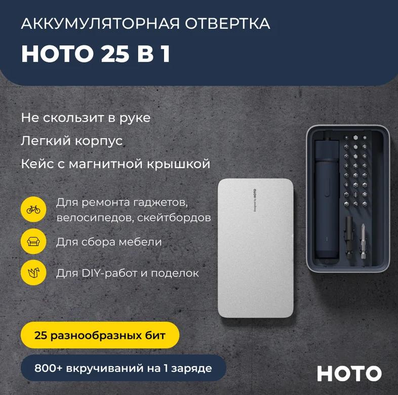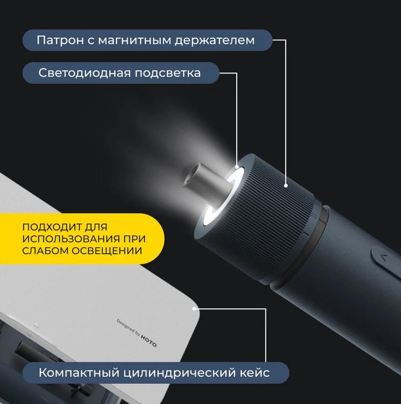 Электроотвертка HOTO HTE0010GL (темно-серый, с набором бит, QWLSD010)