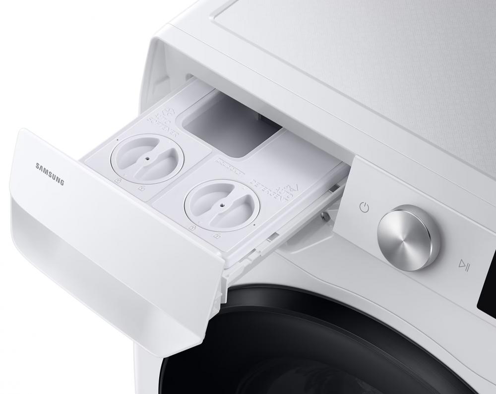 *На базе алгоритма, разработанного с использованием технологии ИИ. Фактические результаты могут зависеть от индивидуальных особенностей использования.**По сравнению с обычным автоматическим дозатором Samsung, который настроен на дозирование рекомендованного количества моющего средства. На основе непрерывного анализа количества моющего средства, использованного за последние 10 циклов. Фактические результаты могут зависеть от индивидуальных особенностей использования.