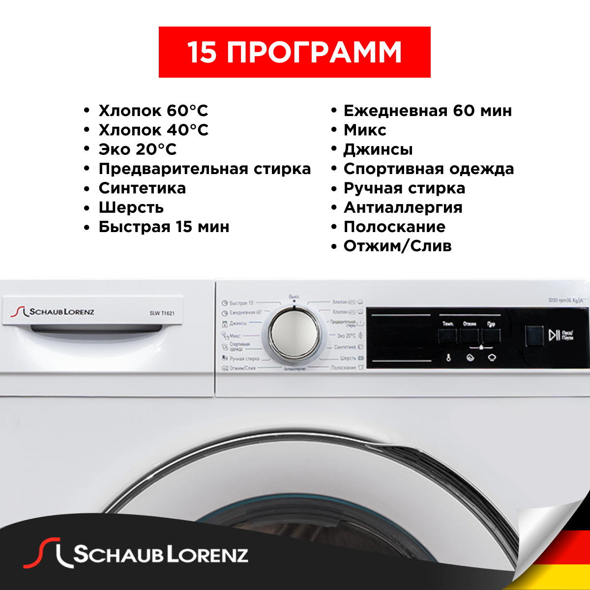 Стиральная машина SCHAUB LORENZ SLW T1621 по выгодной цене. Вам достаточно оформить заказ онлайн на сайте или по телефонам (029) 6 10 22 11, (033) 6 10 22 11, (017) 2 18 33 22.