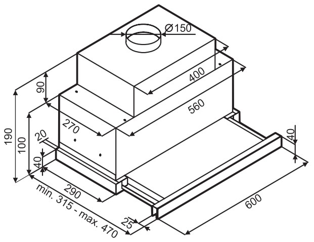 • Диаметр выходного отверстия: 150 мм