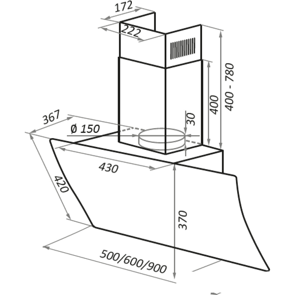 - Диаметр выходного отверстия: 150 мм