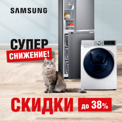 Скидки до 38% на холодильники и стиральные машины SAMSUNG!