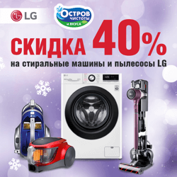 Получите скидку 40% на стиральные машины и пылесосы LG!