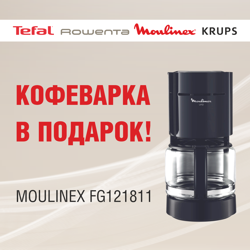 и получайте в подарок кофеварку MOULINEX FG121811. В акции участвуют грили, блендеры, мультиварки, мясорубки, электрочайники, пылесосы, утюги и многое другое!