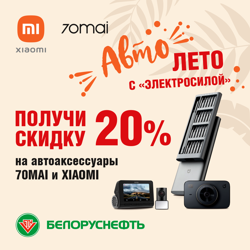 С 1 июля по 10 августа заправляйтесь в сети автозаправочных станций «БЕЛОРУСНЕФТЬ» любым видом топлива от 30 литров в одном чеке и получайте чек-купон на СКИДКУ 20% на автоаксессуары XIAOMI и 70MAI в «ЭЛЕКТРОСИЛЕ». Видеорегистраторы, компрессоры, пылесосы, зарядные устройства, наборы инструментов!