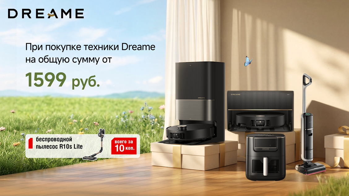 При покупке техники DREAME от 1599 руб. пылесос за 10 коп.