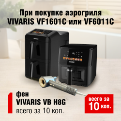 По 30 апреля покупайте аэрогриль VIVARIS VF1601C или VIVARIS VF6011C и получите возможность приобрести фен VIVARIS VB H8G всего за 10 копеек!