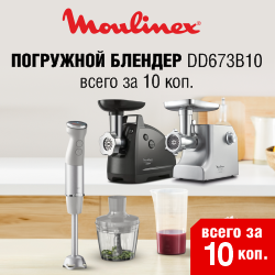 По 9 марта покупайте мясорубку MOULINEX и получите возможность приобрести погружной брендер MOULINEX всего за 10 копеек!