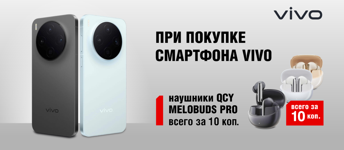 При покупке смартфона VIVO X300 наушники QCY за 10 коп.