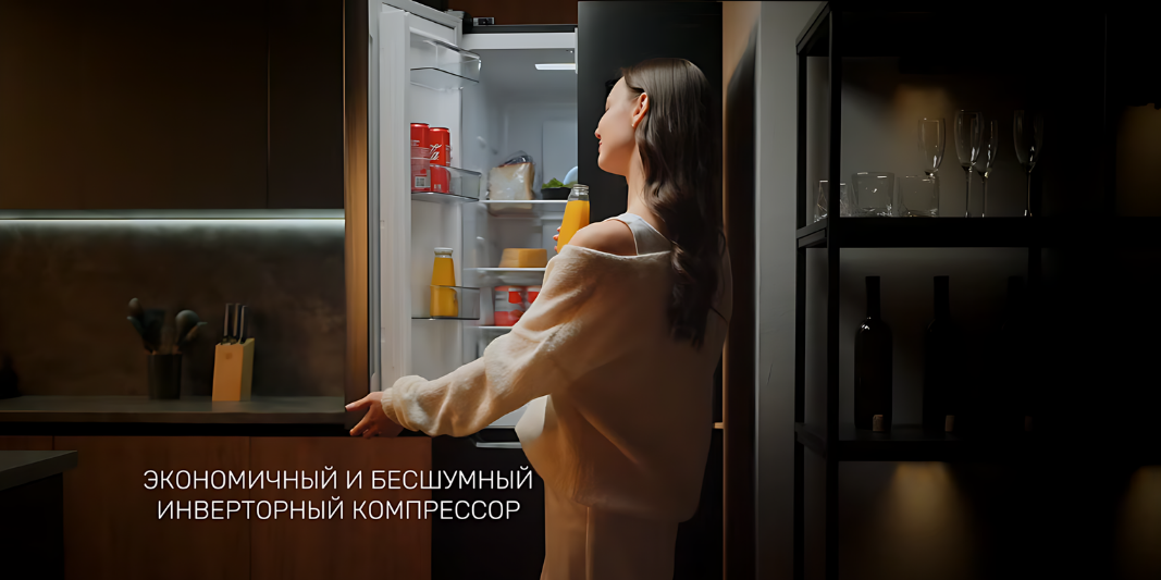 Инверторный компрессор обеспечивает низкий уровень шума и высокую энергоэффективность.