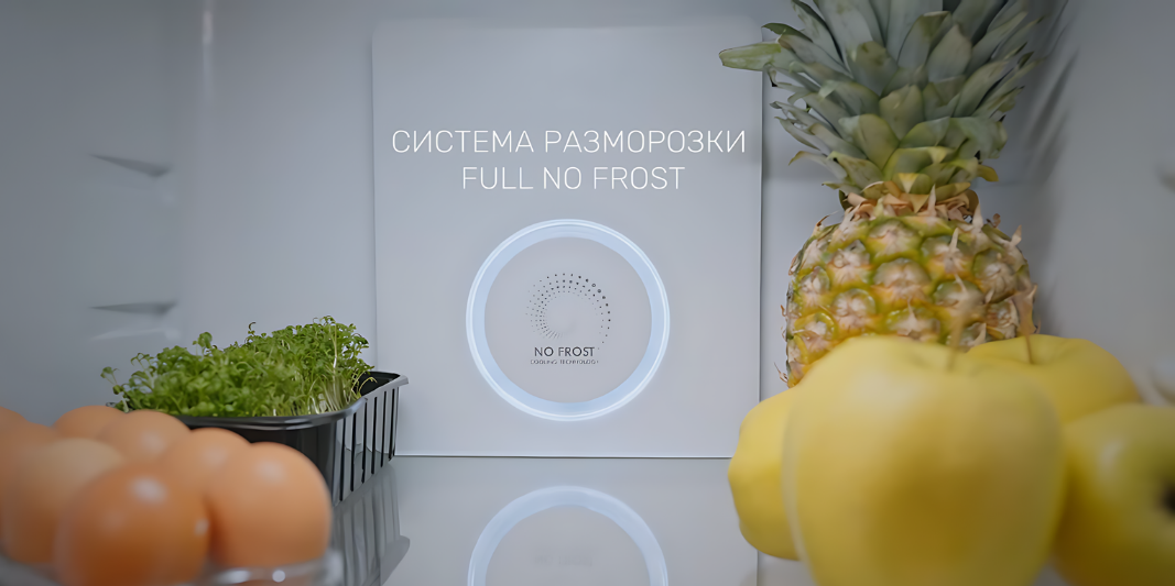 Модель оснащена системой No Frost, которая предотвращает образование инея и льда, избавляя вас от необходимости регулярной разморозки. Внутри есть 4 стеклянные полки, 2 ящика для овощей и фруктов, а также 4 дверные полки для хранения бутылок и банок.