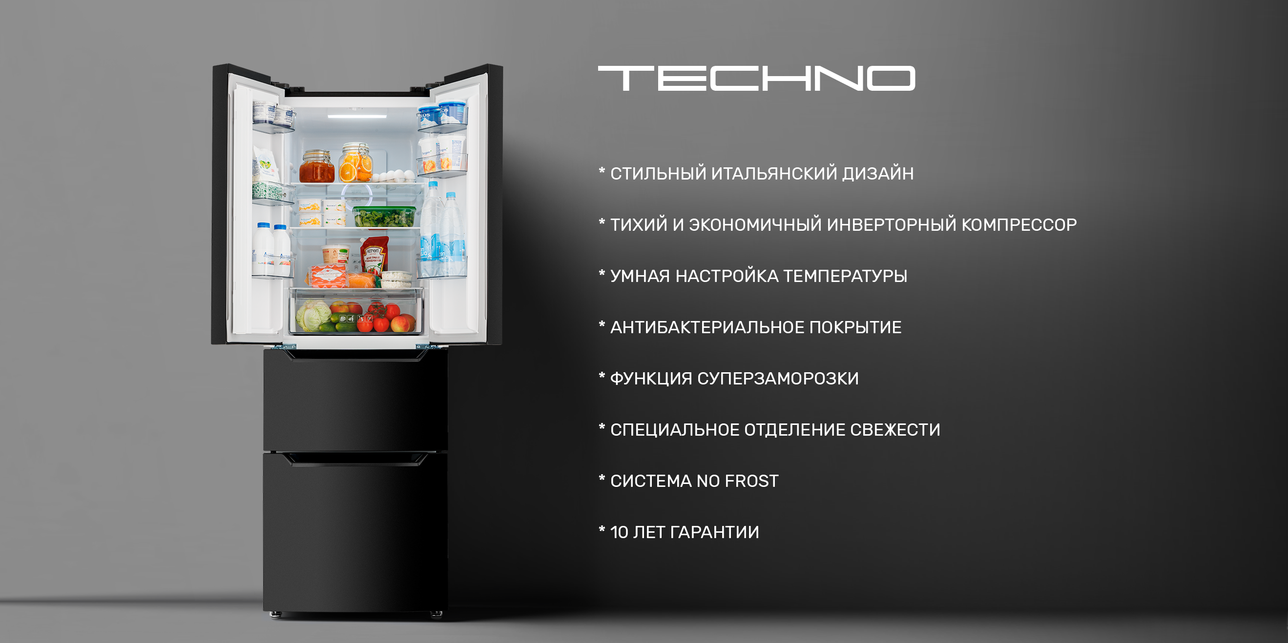Стильный и технологичный холодильник TECHNO FS4-36 BI