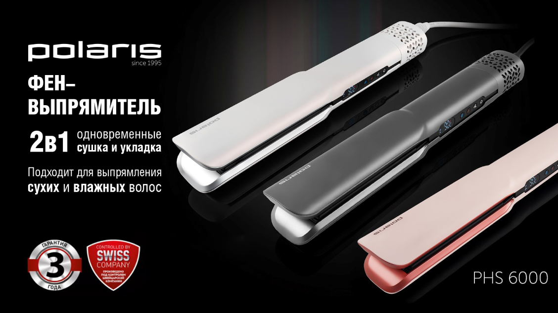 Новинка в нашем каталоге — стайлер от POLARIS. Это прибор 2-в-1, который и сушит, и выпрямляет волосы за один подход.