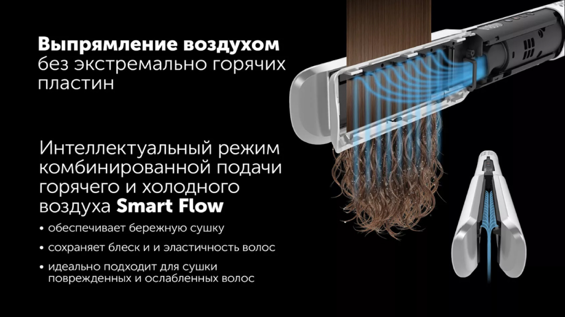 Главное преимущество стайлера POLARIS PHS 6000 — он сушит и выпрямляет волосы без экстремального нагрева пластин, за счёт мощного воздушного потока. Технология AI Sense использует 4 инновационных датчика контроля температуры, гарантируя стабильный и безопасный уровень нагрева волос и сохраняя их естественный уровень влаги.